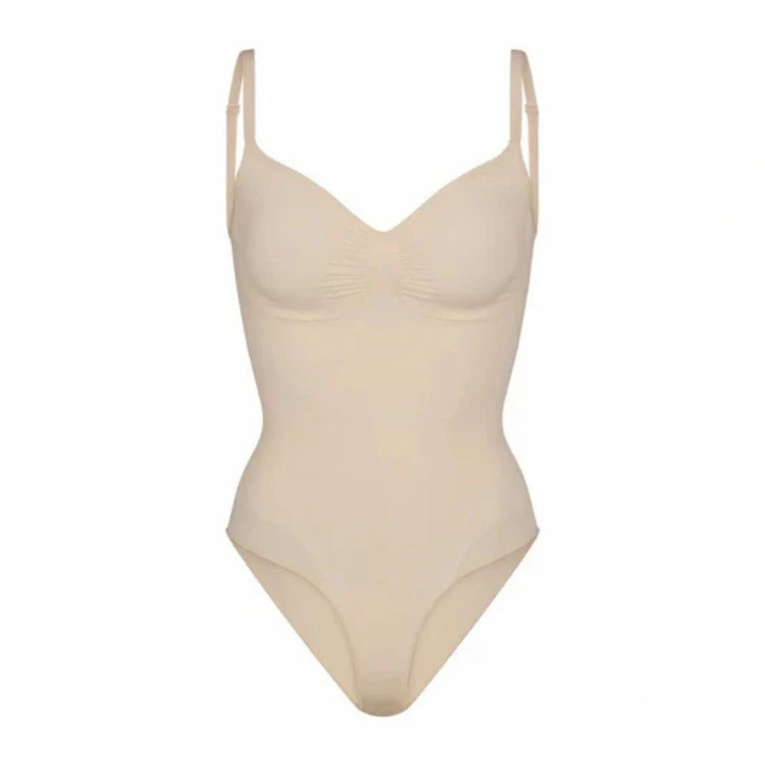 The shaping body hugs and supports the curves, helps reduce unwanted bulges, and improves skin tone. With daily wear, it sculpts the silhouette in a natural and comfortable way.