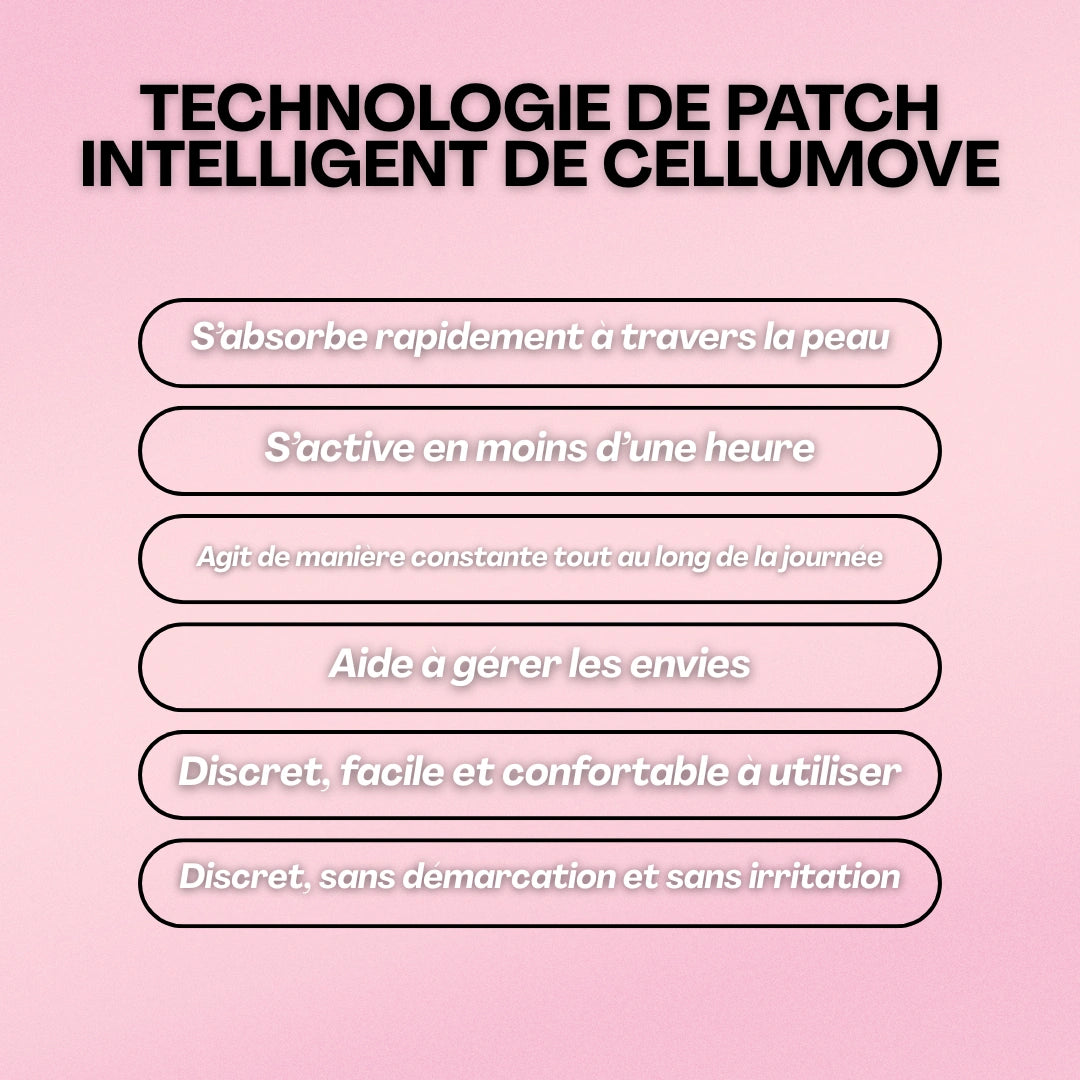 Le patch Cellumove n'est pas un simple patch brûleur de graisse. Il cible directement les signaux neurohormonaux liés à l'appétit. Sans caféine, sans « remède miracle », il s'agit d'une approche stable et naturelle, fondée sur les dernières recherches concernant le GLP-1.